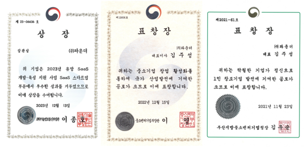 주식회사 파운더의 혁신성과 사업 가치는 대내외에서 크게 인정받고 있다. 앞서 언급한 과학기술정보통신부 장관상 수상(2023) 외에도, 지역 경제 발전과 일자리 창출 기여를 인정받아 중소벤처기업부 장관 표창 및 부산지방중소벤처기업청장 표창을 수상한 바 있다.